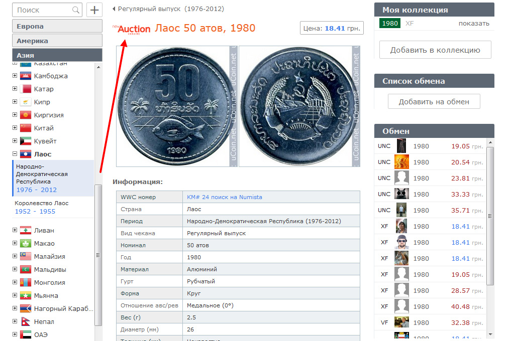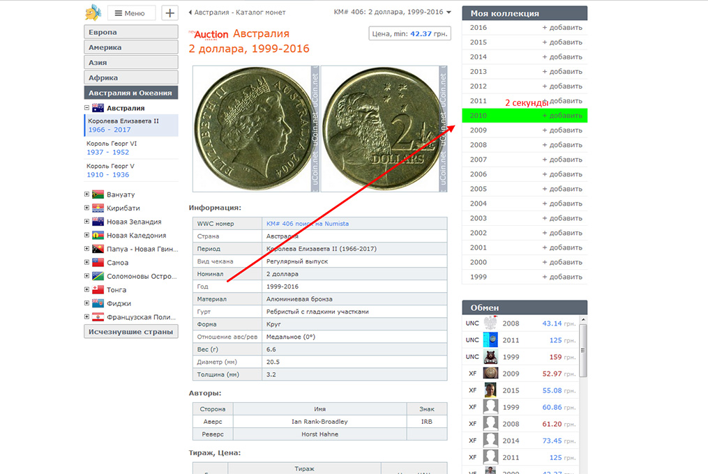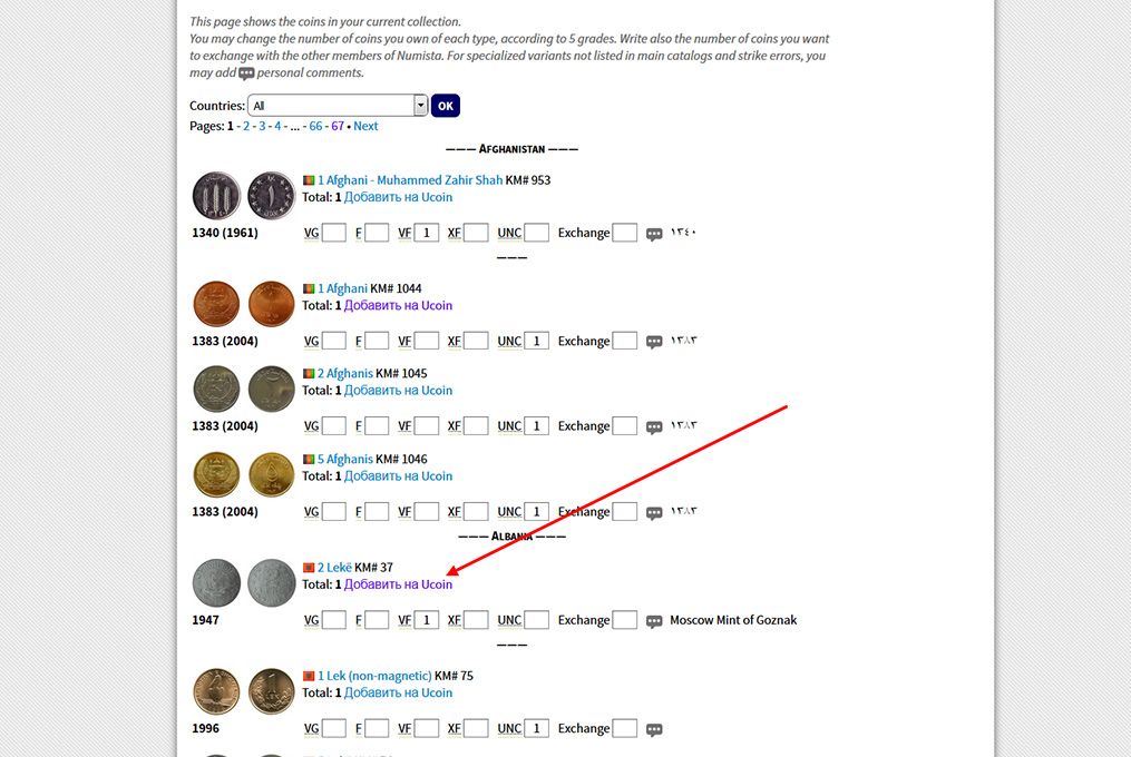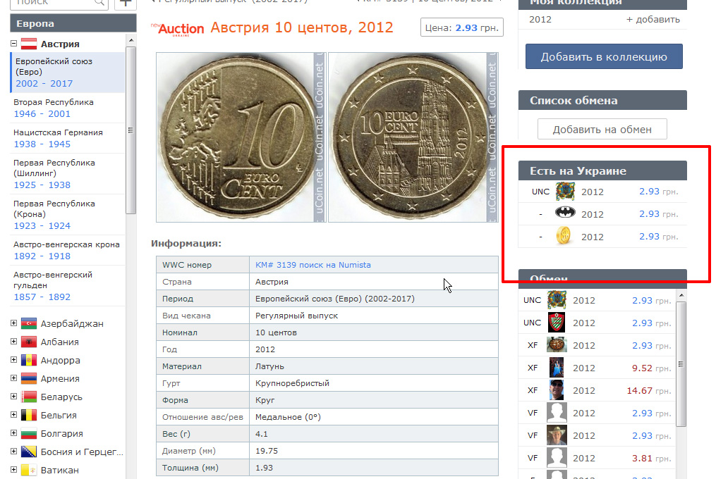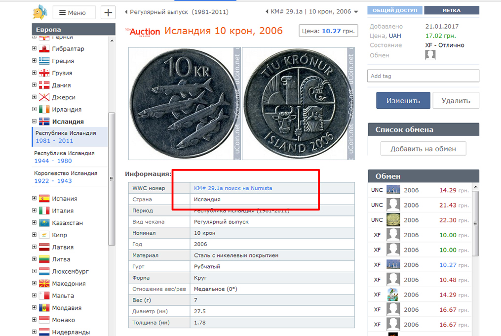 Позволяет быстро найти и добавить монету из Вашей колекции в Numista в Ucoin.