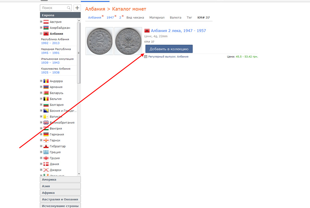 Позволяет быстро найти и добавить монету из Вашей колекции в Ucoin в Numista.