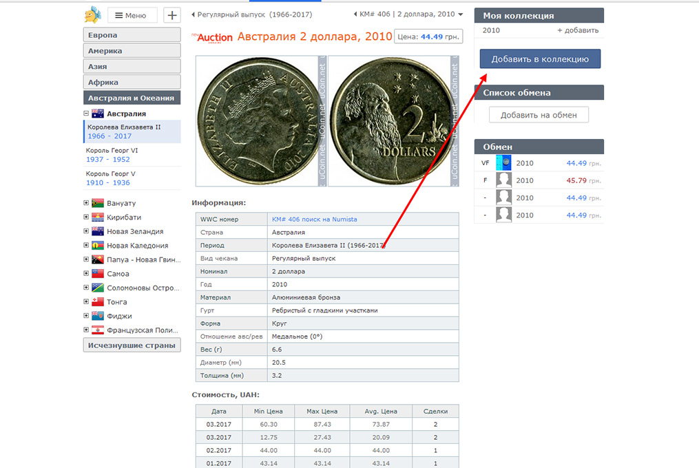 Позволяет быстро найти и добавить монету из Вашей колекции в Numista в Ucoin.
